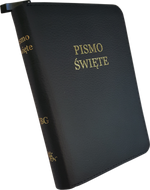 Uwspółcześniona Biblia Gdańska UBG A6 mała gładka skóra zamek złoto czarna